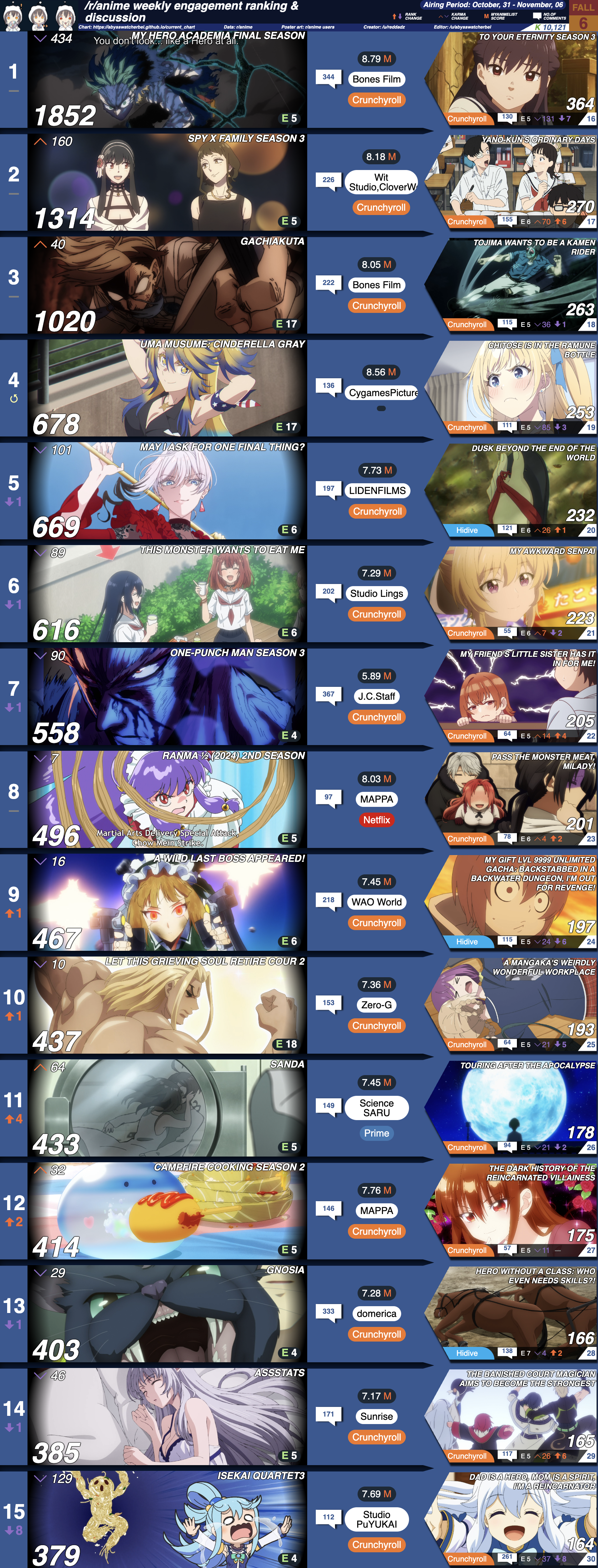 海外「2026年秋アニメ人気ランキング、シーズン折り返し時点の各アニメの評価はどうなってる・・・?」 海外の反応